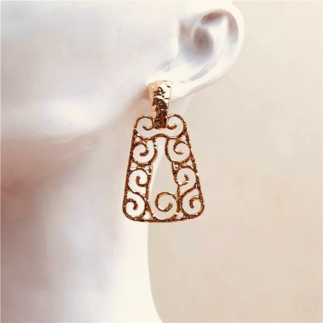 ◆商品情報 カラー:ゴールド 素材:合金 サイズ:モチーフ部分約2.6cm×3.4cm、全長約4.4cm コンバーター(別売)をご装着いただくことにより、ピアスホールが空いていらっしゃらない場合でもイヤリングとしてお召しいただけます。 イヤリングやペンダントネックレスへのアレンジも承ります(納期約1週間) 誕生日や結婚記念日、プレゼント、ギフトとしてなど、贈り物にもおすすめです。 ラッピングをご希望の場合は+500円にて承ります。 ◆注意事項 ・複数在庫を持つうちの一点を撮影しております ・採寸方法により若干の誤差が生じる場合がございます ・金属アレルギーの方は念のためご一考くださいませ ・世界情勢及び物流に問題が生じた場合、金属パーツの仕様は変更となる可能性が御座います